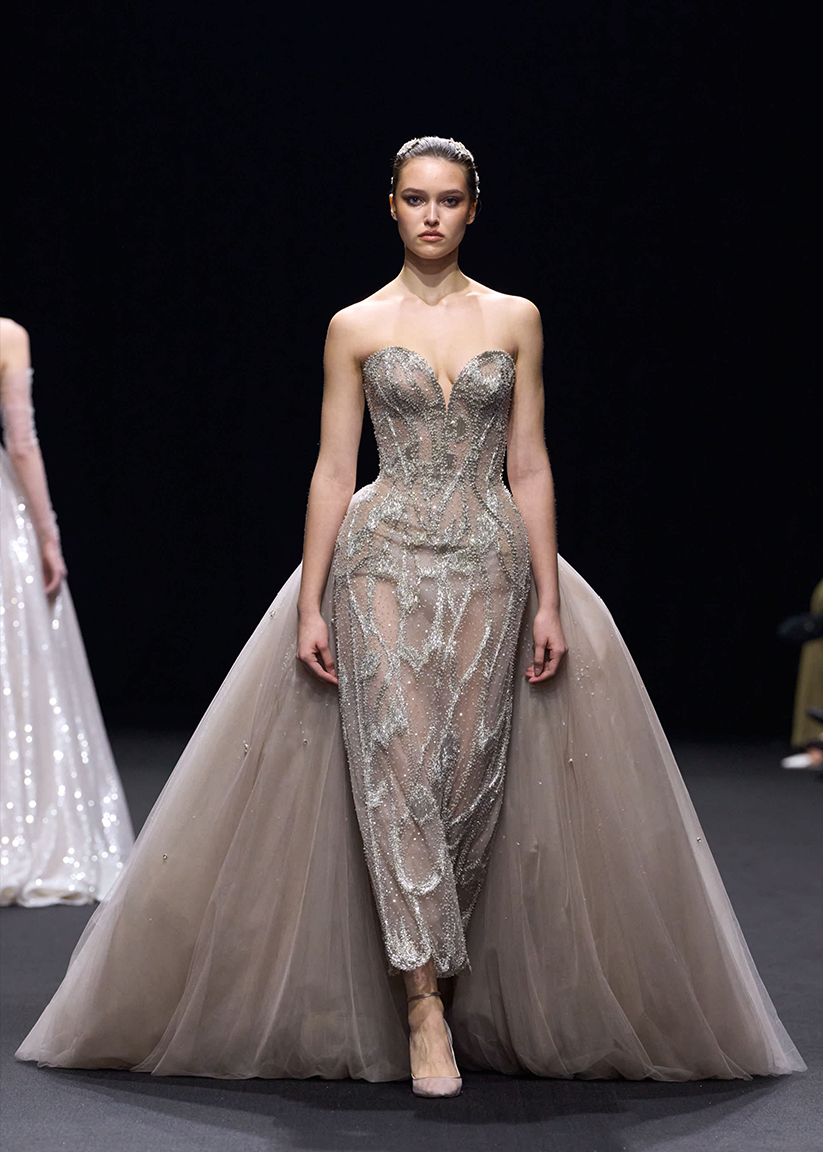 From the Italian translation of ‘stardust’, Polvere Di Stelle is a mystical and glamorous collection where elegance meets extravagance, with a dreamy combination of illusion tulle, and romantic soft bust silhouettes, seamlessly balanced with showstopping crystal beadwork, and dramatic corsetry.